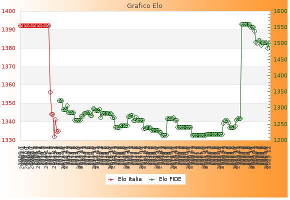 Elo FIDE: 1501    Migliore: 1560  (Settembre 2024)    Peggiore: 1216  (Febbraio 2019)