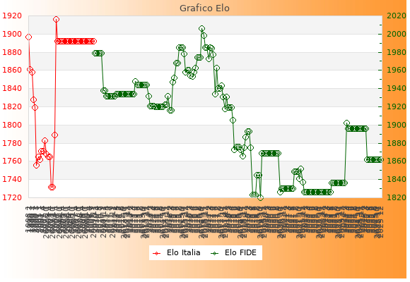 Elo FIDE: 1862    Migliore: 2006  (Ottobre 2016)    Peggiore: 1820  (Ottobre 2019)