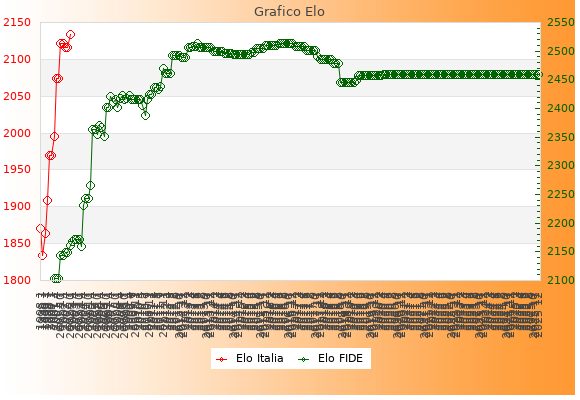 Elo FIDE: 2459    Migliore: 2514  (Dicembre 2016)    Peggiore: 2104  (Gennaio 2001)