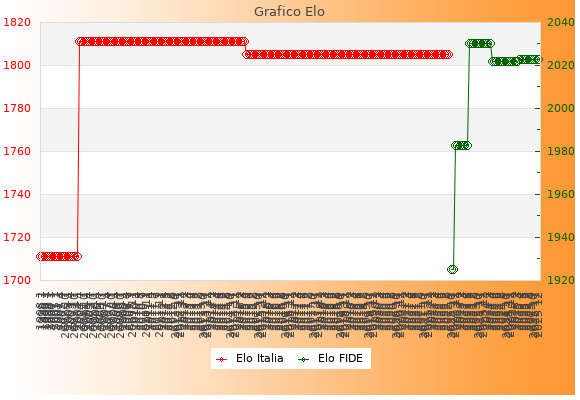 Elo FIDE: 1719    Migliore: 1781  (Dicembre 2024)    Peggiore: 1332  (Ottobre 2017)