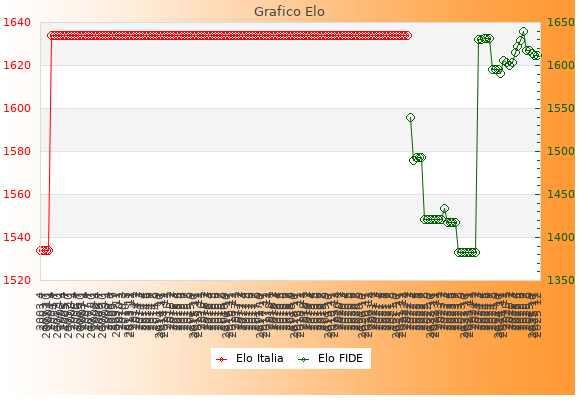 Elo FIDE: 1612    Migliore: 1639  (Luglio 2025)    Peggiore: 1383  (Agosto 2023)