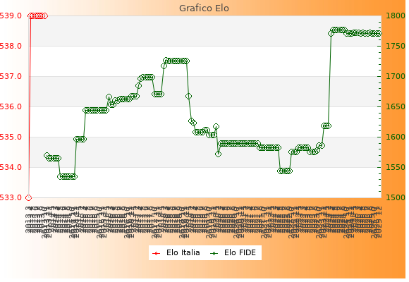 Elo FIDE: 1771    Migliore: 1777  (Settembre 2024)    Peggiore: 1535  (Maggio 2014)