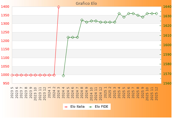 Elo FIDE: 1633    Migliore: 1633  (Dicembre 2025)    Peggiore: 1568  (Aprile 2024)