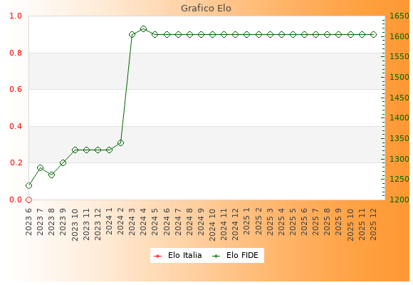 Elo FIDE: 1604    Migliore: 1618  (Aprile 2024)    Peggiore: 1235  (Giugno 2023)