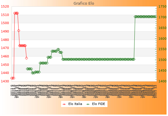 Elo FIDE: 1702    Migliore: 1702  (Dicembre 2025)    Peggiore: 1440  (Giugno 2015)
