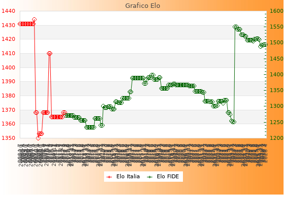Elo FIDE: 1494    Migliore: 1551  (Aprile 2024)    Peggiore: 1234  (Dicembre 2013)