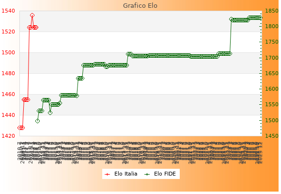 Elo FIDE: 1829    Migliore: 1829  (Dicembre 2025)    Peggiore: 1498  (Agosto 2012)