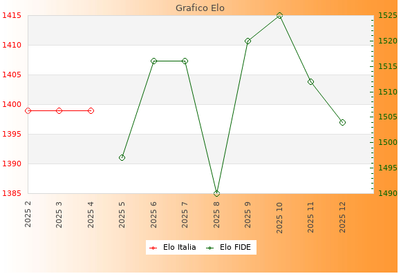Elo FIDE: 1504    Migliore: 1525  (Ottobre 2025)    Peggiore: 1490  (Agosto 2025)