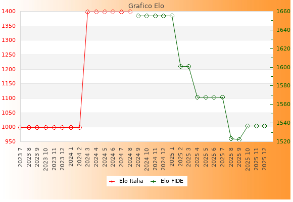 Elo FIDE: 1537    Migliore: 1655  (Gennaio 2025)    Peggiore: 1522  (Settembre 2025)
