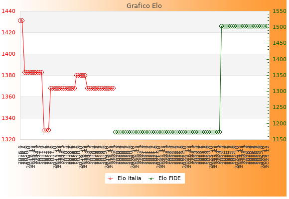 Elo FIDE: 1504    Migliore: 1504  (Dicembre 2025)    Peggiore: 1173  (Febbraio 2020)