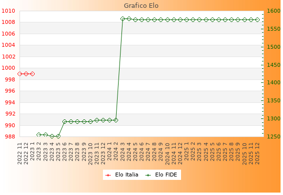 Elo FIDE: 1576    Migliore: 1578  (Aprile 2024)    Peggiore: 1251  (Aprile 2023)