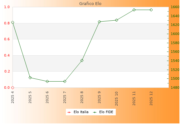 Elo FIDE: 1654    Migliore: 1654  (Dicembre 2025)    Peggiore: 1494  (Giugno 2025)
