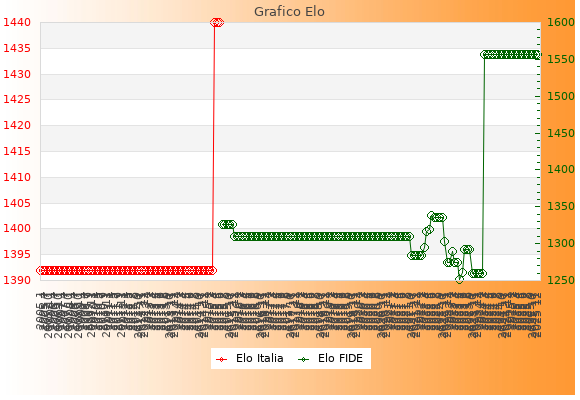 Elo FIDE: 1557    Migliore: 1557  (Dicembre 2025)    Peggiore: 1251  (Maggio 2023)