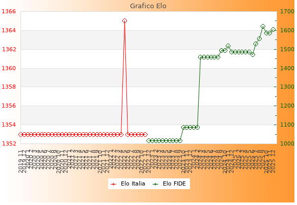 Elo FIDE: 1605    Migliore: 1622  (Settembre 2025)    Peggiore: 1015  (Dicembre 2022)