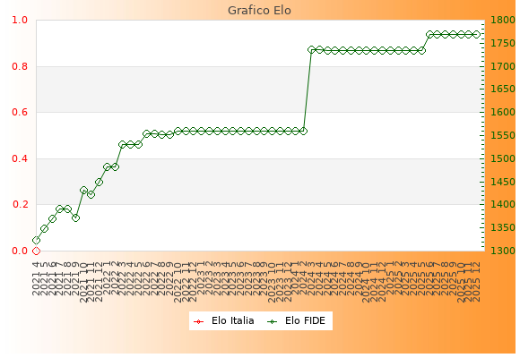 Elo FIDE: 1769    Migliore: 1769  (Dicembre 2025)    Peggiore: 1324  (Aprile 2021)