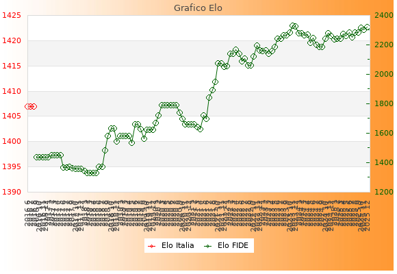 Elo FIDE: 2320    Migliore: 2330  (Novembre 2023)    Peggiore: 1329  (Febbraio 2018)