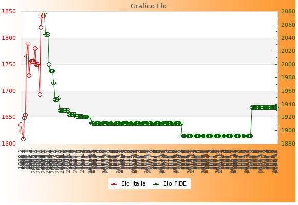 Elo FIDE: 1935    Migliore: 2077  (Gennaio 2005)    Peggiore: 1892  (Aprile 2019)