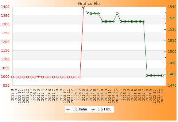 Elo FIDE: 1479    Migliore: 1535  (Aprile 2024)    Peggiore: 1479  (Agosto 2025)