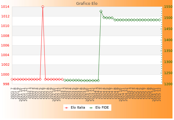 Elo FIDE: 1490    Migliore: 1530  (Marzo 2024)    Peggiore: 1216  (Agosto 2023)