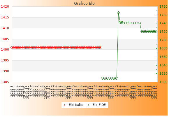 Elo FIDE: 1721    Migliore: 1765  (Marzo 2024)    Peggiore: 1609  (Giugno 2023)