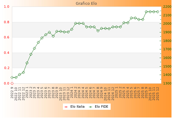Elo FIDE: 2140    Migliore: 2140  (Dicembre 2025)    Peggiore: 1369  (Settembre 2022)