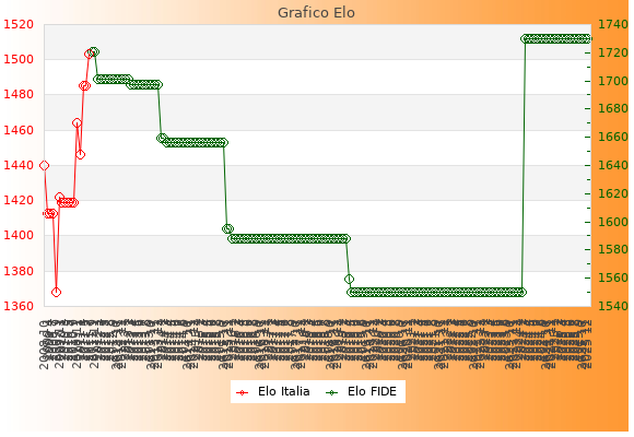 Elo FIDE: 1730    Migliore: 1730  (Dicembre 2025)    Peggiore: 1550  (Maggio 2019)