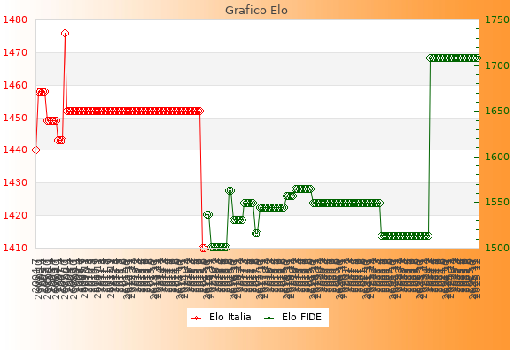 Elo FIDE: 1708    Migliore: 1708  (Dicembre 2025)    Peggiore: 1501  (Dicembre 2015)