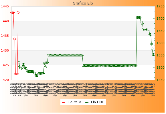 Elo FIDE: 1554    Migliore: 1705  (Luglio 2024)    Peggiore: 1469  (Novembre 2013)