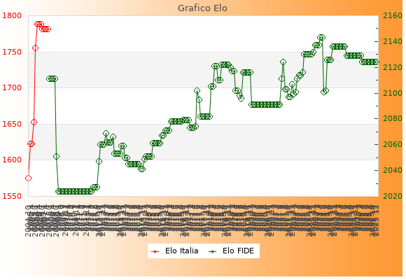 Elo FIDE: 2124    Migliore: 2143  (Maggio 2023)    Peggiore: 2024  (Gennaio 2009)