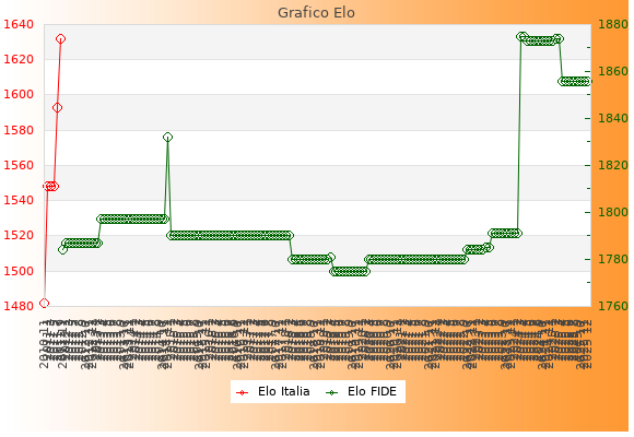Elo FIDE: 1856    Migliore: 1875  (Aprile 2024)    Peggiore: 1775  (Aprile 2019)