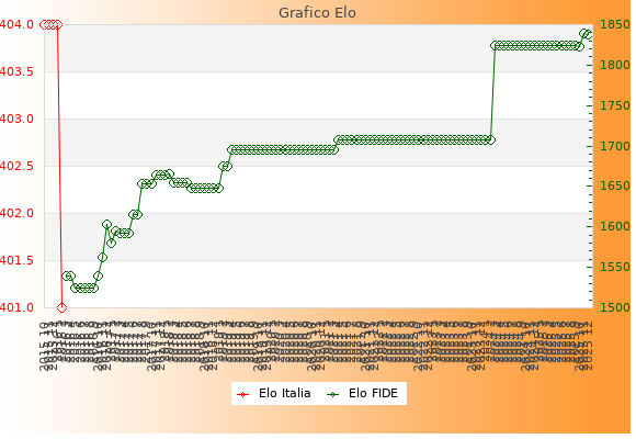 Elo FIDE: 1838    Migliore: 1839  (Novembre 2025)    Peggiore: 1525  (Maggio 2016)
