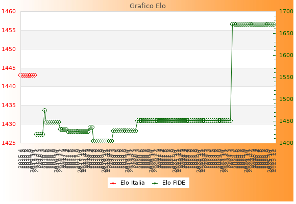 Elo FIDE: 1671    Migliore: 1671  (Dicembre 2025)    Peggiore: 1405  (Maggio 2018)