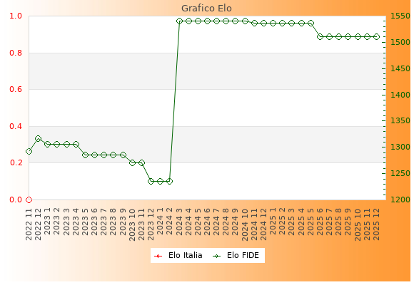 Elo FIDE: 1511    Migliore: 1541  (Aprile 2024)    Peggiore: 1235  (Dicembre 2023)