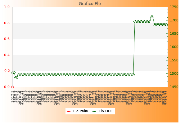 Elo FIDE: 1684    Migliore: 1713  (Marzo 2025)    Peggiore: 1485  (Luglio 2017)