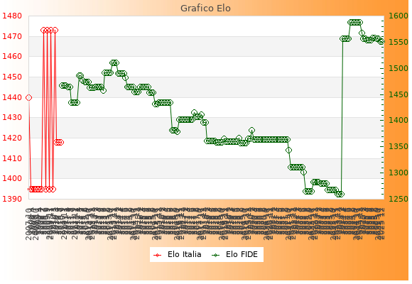 Elo FIDE: 1551    Migliore: 1588  (Dicembre 2024)    Peggiore: 1260  (Dicembre 2023)