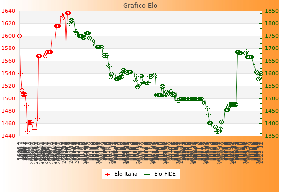 Elo FIDE: 1600    Migliore: 1812  (Gennaio 2011)    Peggiore: 1367  (Agosto 2022)