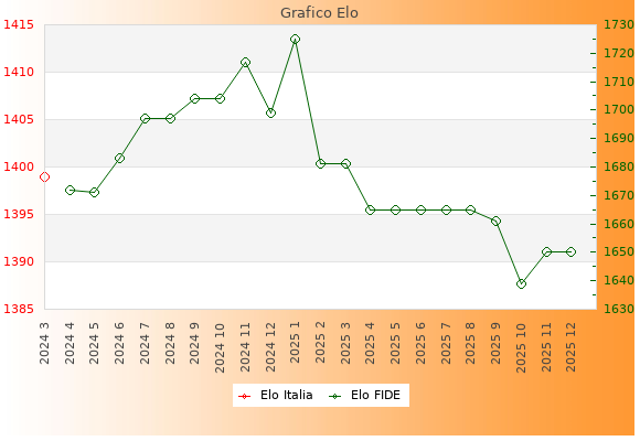 Elo FIDE: 1650    Migliore: 1725  (Gennaio 2025)    Peggiore: 1639  (Ottobre 2025)