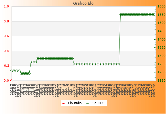 Elo FIDE: 1552    Migliore: 1552  (Dicembre 2025)    Peggiore: 1193  (Gennaio 2019)