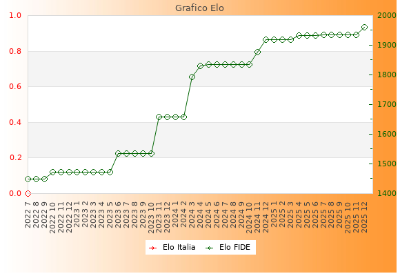 Elo FIDE: 1960    Migliore: 1960  (Dicembre 2025)    Peggiore: 1448  (Luglio 2022)