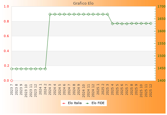 Elo FIDE: 1631    Migliore: 1669  (Marzo 2025)    Peggiore: 1448  (Luglio 2023)