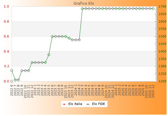 Elo FIDE: 1686    Migliore: 1686  (Dicembre 2025)    Peggiore: 1209  (Luglio 2022)