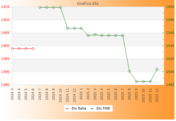 Elo FIDE: 1504    Migliore: 1599  (Ottobre 2024)    Peggiore: 1485  (Settembre 2025)