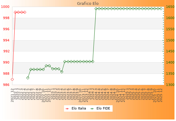 Elo FIDE: 1642    Migliore: 1642  (Dicembre 2025)    Peggiore: 1331  (Maggio 2022)