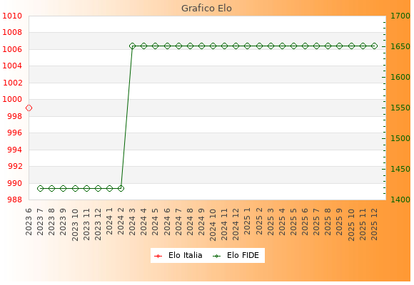 Elo FIDE: 1651    Migliore: 1651  (Dicembre 2025)    Peggiore: 1419  (Luglio 2023)