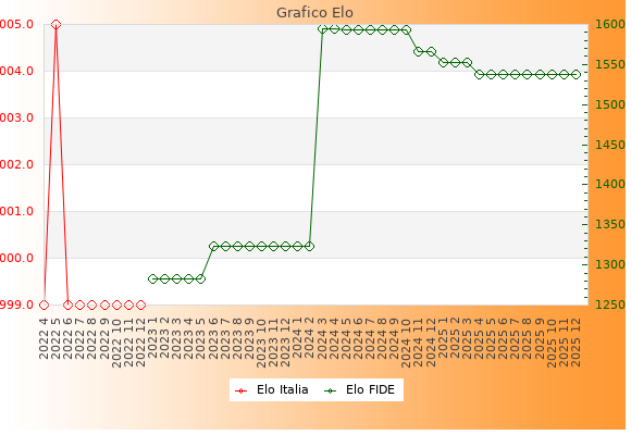 Elo FIDE: 1537    Migliore: 1594  (Aprile 2024)    Peggiore: 1282  (Gennaio 2023)