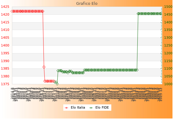 Elo FIDE: 1455    Migliore: 1455  (Dicembre 2025)    Peggiore: 1002  (Gennaio 2018)