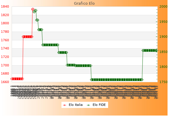 Elo FIDE: 1855    Migliore: 1987  (Gennaio 2009)    Peggiore: 1758  (Ottobre 2017)