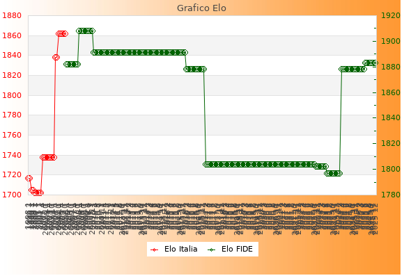 Elo FIDE: 1883    Migliore: 1908  (Novembre 2009)    Peggiore: 1797  (Giugno 2023)