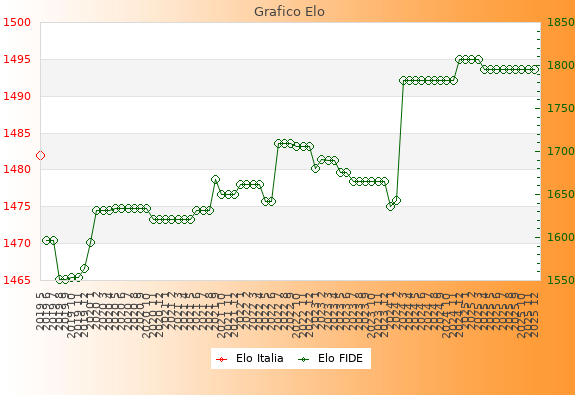 Elo FIDE: 1795    Migliore: 1807  (Marzo 2025)    Peggiore: 1551  (Agosto 2019)