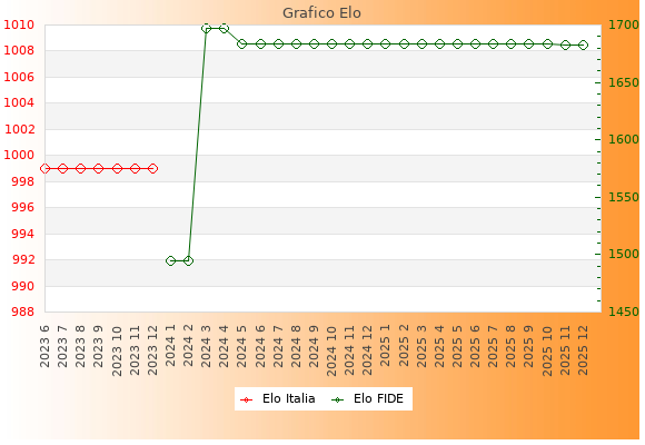 Elo FIDE: 1683    Migliore: 1697  (Aprile 2024)    Peggiore: 1495  (Gennaio 2024)